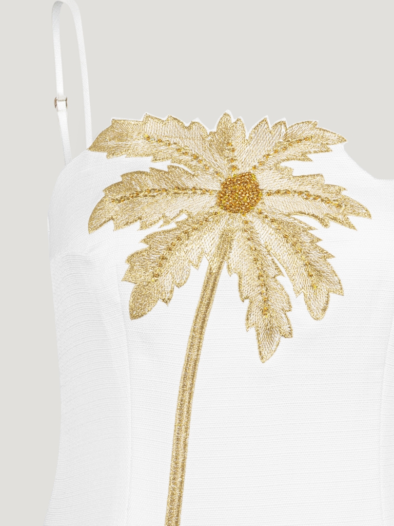 Chất liệu: Vải tweed chun mát cùng kỹ thuật thêu họa tiết tropical