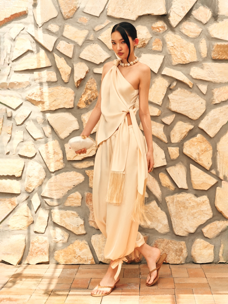 IVORY OFF - SHOULDER SILK TOP