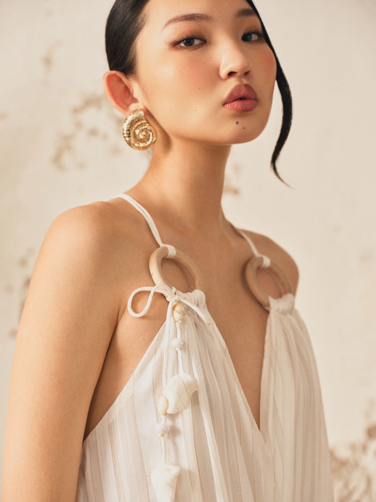 WHITE DRESS WITH WOODEN RINGS