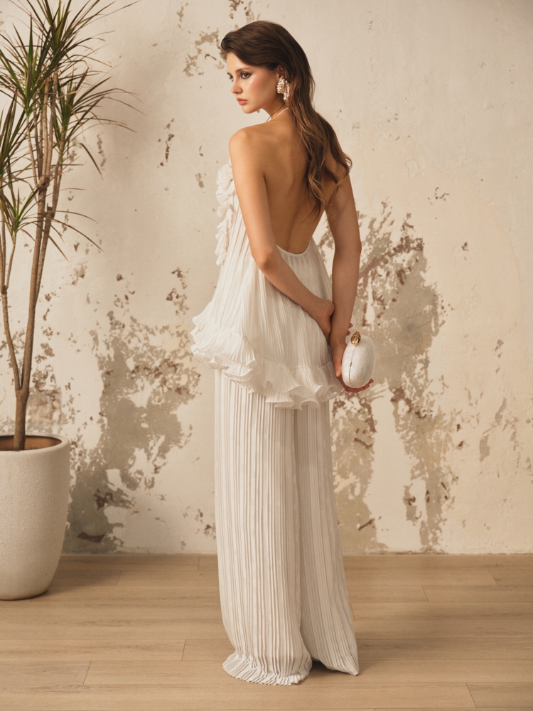 WHITE OFF-SHOULDER PLEATED FLORAL TOP